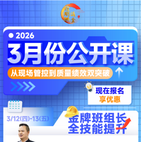 礼明讲堂精心策划了2026年3月份的系列公开课,涵盖班组长能力提升、目标绩效管理以及TQM全面质量管理三大领域,助你在职场中脱颖而出!