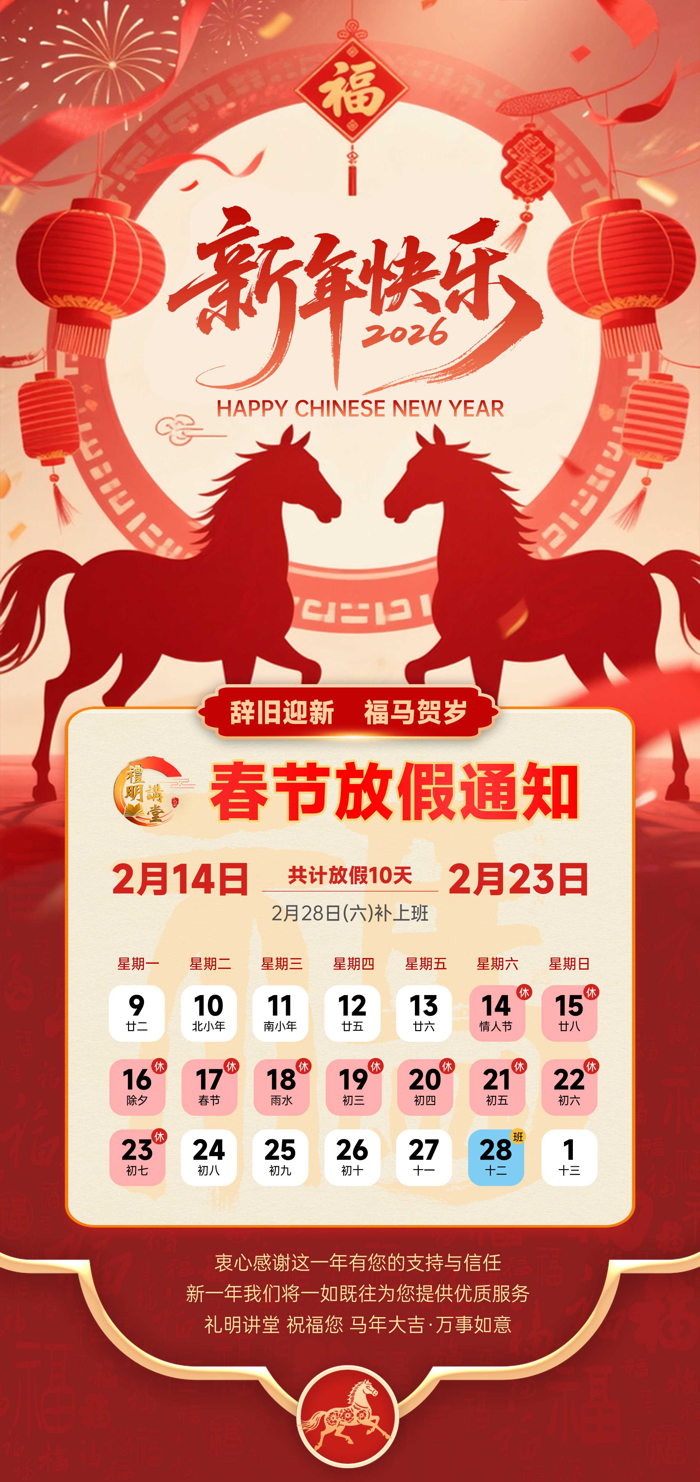 礼明讲堂放假通知