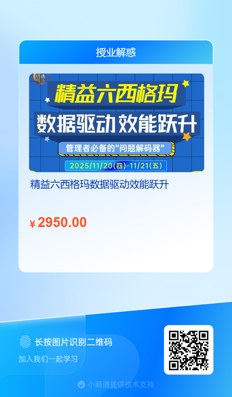 如何精准识别问题,制定高效解决方案?答案就在于——精益六西格玛。礼明讲堂诚挚邀请您参加即将举办的“精益六西格玛:数据驱动,效能跃升”培训课程